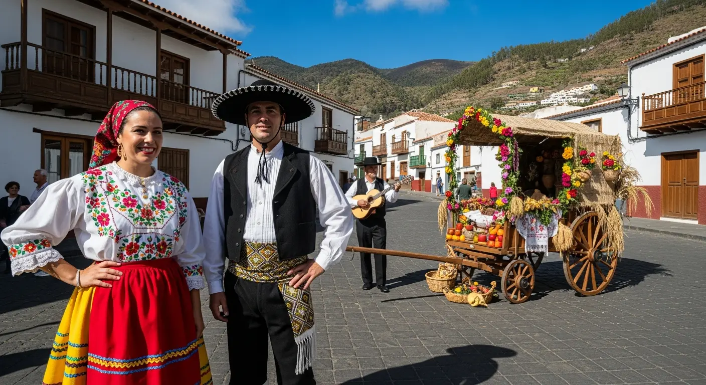 Die Trachten variieren regional, oft sind sie geprägt von bunten Stoffen, aufwendig bestickten Blusen und Röcken sowie spezifischen Kopfbedeckungen, die lokale Identitäten reflektieren. In der Festtagsküche spiegeln sich die Einflüsse der kanarischen Landwirtschaft und des Meeres wider, mit Gerichten, die traditionell bei Feierlichkeiten angeboten werden und besondere Zutaten nutzen.
